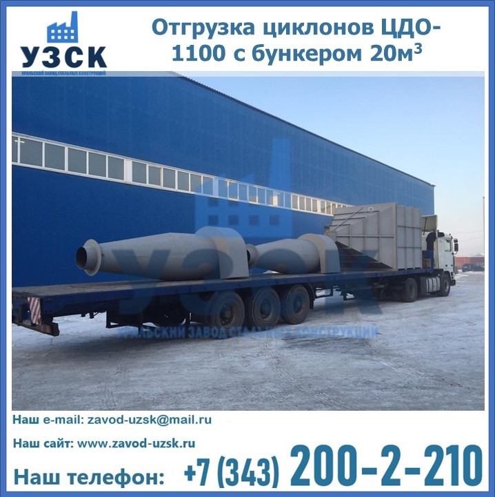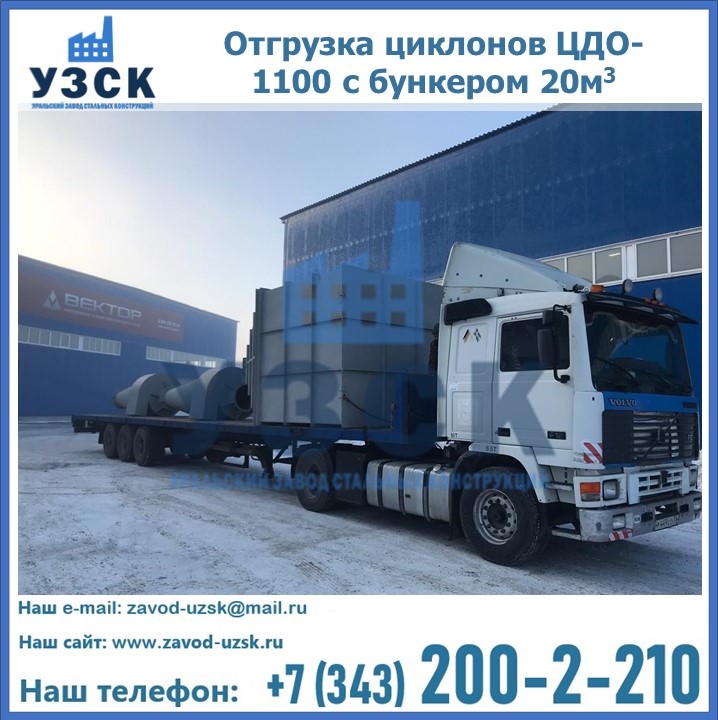 Циклоны ЦДО-1100 с бункером на 20 кубов были отгружены в декабре 2018 года в г. Новосибирск Екатеринбург.
