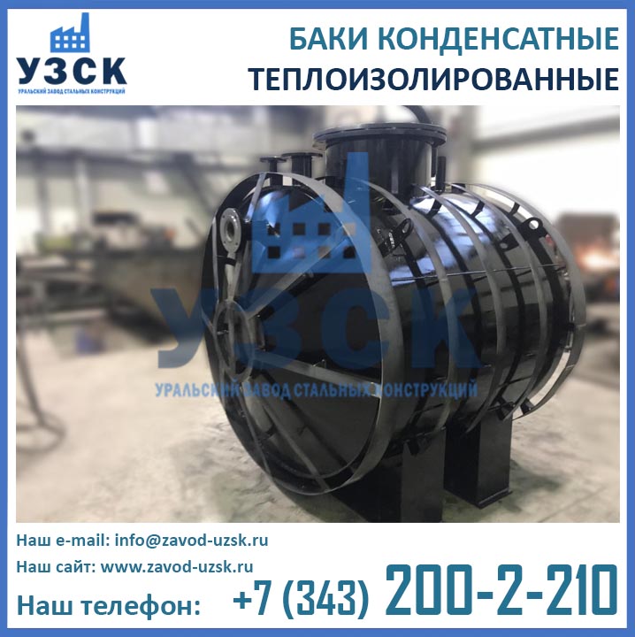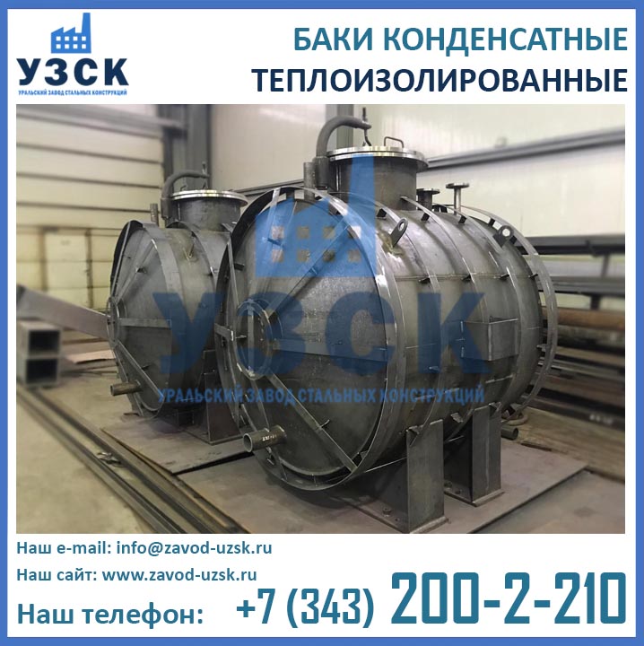 Уральский завод стальных конструкций – непосредственный производитель резервуарного оборудования. Мы предлагаем самые выгодные цены конденсатных баков любого объема, исполнения и комплектации. В составе завода работает инженерно-конструкторский отдел, осуществляющий проектирование баков по индивидуальным размерам и техническим заданиям заказчика.