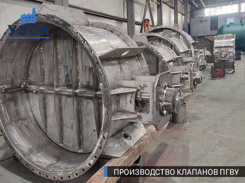 Производство клапанов ПГВУ осуществлено из стали 12Х18Н10Т и 20Х23Н18 по чертежам заказчика. Круглые клапаны Ду 500 — Ду 1700 мм изготовлены в полном соответствии с конструкторской документации заказчика. Сварные соединения выполнены аттестованными сварщиками и соответствуют ГОСТ 14771-76 и ГОСТ 16037-80.