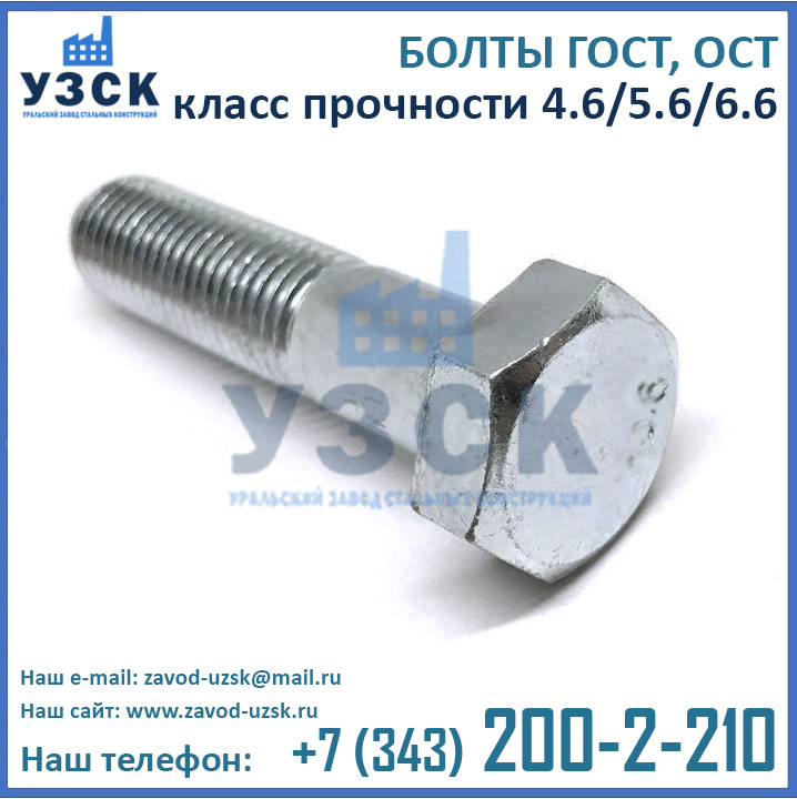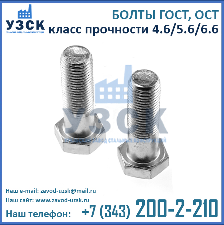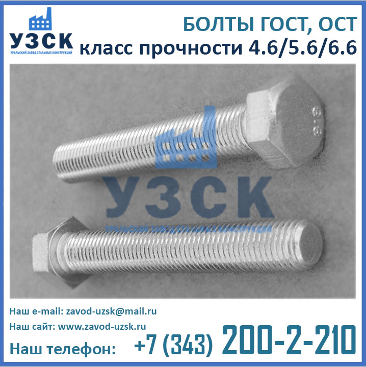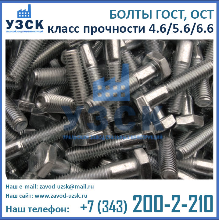 Приобретая болты ГОСТ и ОСТ классов прочности 6.6, 4.6 и 5.6 напрямую у завода-изготовителя Вы не переплачиваете многочисленным посредникам. Кроме того, при обширных объемах закупки завод «УЗСК» предлагает скидки на болты всех типоразмеров. Ознакомится с декларациями соответствия, сертификатами ИСО и прочими разрешительными документами Уральского Завода Стальных Конструкций Вы можете в разделе ДОКУМЕНТАЦИЯ на нашем сайте.