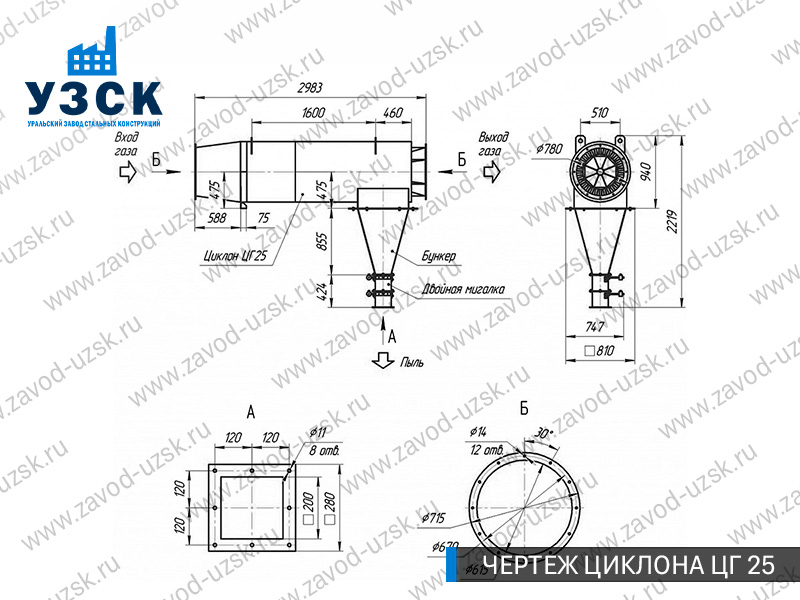 Монтаж циклона-искрогасителя ЦГ должен осуществляться непосредственно к горизонтальному вентиляционному каналу на входе в систему фильтрации и аспирации. Заказать изготовление по индивидуальному техзаданию или купить готовый циклон-искрогаситель ЦГ на заводе УЗСК в Екатеринбурге можно, оставив заявку прямо на сайте или позвонив по указанному телефону, уточнив все детали касательно продажи оборудования.