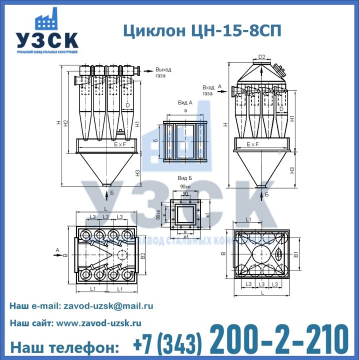 Завод «УЗСК» в Екатеринбурге предлагает большой выбор циклонов ЦН-15-500×8СП и прочих устройств, полностью укомплектованных и готовых к эксплуатации. Мы гарантируем соответствие оборудования всем требованиям ГОСТ и ТУ, износостойкость и высокую производительность предлагаемого оборудования. Уральский Завод Стальных Конструкций изготавливает и продает надежное, эффективное и производительное оборудование, имеющее длительную гарантию и большой эксплуатационный ресурс. Если требуется изготовить циклон нестандартных размеров, то такой вариант выполнения заказа тоже предусмотрен, так как предприятие имеет собственные производственные площади и надежных поставщиков. На все поставляемое или производимое оборудование имеются чертежи и прочая техническая документация. Заказать и купить циклоны или прочее оборудование высокого качества и по доступной цене можно через наш сайт или по указанному в разделе