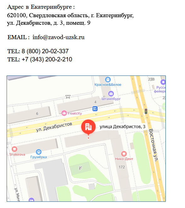 Адрес: 620100, г. Екатеринбург, ул. Декабристов, д. 3, помещ. 9