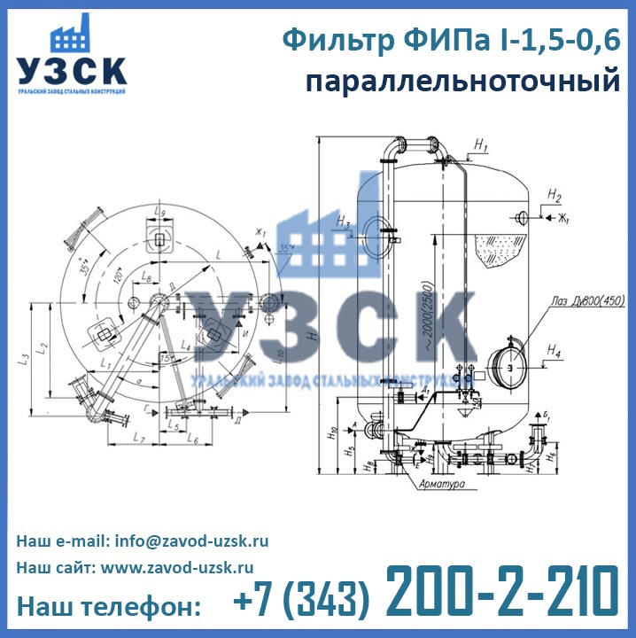 Уральский Завод Стальных Конструкций – ведущий производитель фильтрационного оборудования, осуществляющий изготовление параллельноточных фильтров ФИПаI 1,5-0,6 в соответствии требованиями ГОСТ. Получить консультацию по подбору оборудования, уточнить актуальные цены фильтров ФИПа I 1,5-0,6 в Екатеринбурге и сроки их изготовления, запросить технические характеристики и сертификационные документы Вы можете, связавшись с менеджерами отдела продаж завода УЗСК по координатам, указанным в разделе «Контакты». Если Вы уже определились с выбором и хотите купить фильтр ФИПа I ступени очистки прямо сейчас, заполните форму онлайн заказа размещенную ниже.
