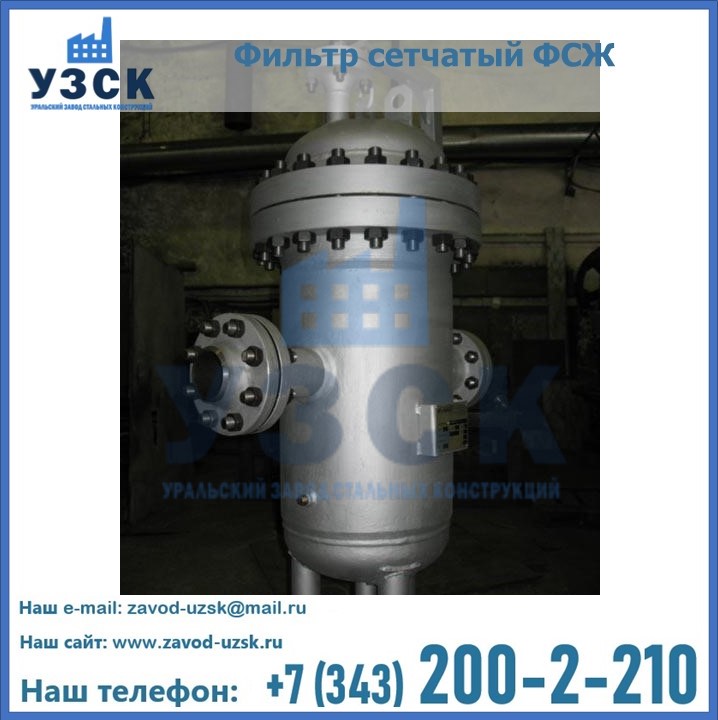 Очистку перекачиваемых жидкостей на предприятиях нефтяной, пищевой, горнорудной, фармацевтической и других отраслей промышленности эффективно выполнять с помощью жидкостного сетчатого фильтра — емкостное оборудование цилиндрической формы со съемной крышкой и элементом фильтрации внутри. Оснащенные им всасывающие линии насосных станций и установок защищены от проникновения твердых частиц в функциональные узлы гидравлической системы. Оборудование служит для перекачивания токсичных, агрессивных и иных эмульсий, суспензий, жидкостей. Купить фильтр сетчатый жидкостный ФСЖ в Екатеринбурге с гарантией производителя предлагает «Уральский завод стальных конструкций». Мы выполняем проектирование и изготовление ФСЖ по индивидуальным требованиям (климатическая зона, транспортируемая жидкость).