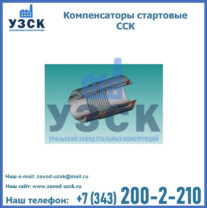 Стартовые компенсаторы, при прокладке прямолинейной системы труб, устанавливается через интервалы, установленные в проекте. В готовую траншею по всей протяженности системы, кроме участков, оборудованных ССК, засыпается грунт. В процессе первоначального нагревочного пуска трубной системы происходит удлинение труб, в результате этого сильфоны стартовых компенсаторов сжимаются. Внешняя стальная оболочка компенсаторов, после нагревания, приваривается. Трубы таким образом фиксируются в грунте, а последующие температурные перепады трансформируются в допустимые стабильные напряжения. Уральский Завод Стальных Конструкций предлагает готовые изделия, а также оборудование под заказ. Наш завод располагает всеми необходимыми возможностями для производства нестандартных компенсаторов ССК. Завод «УЗСК» предлагает большой выбор качественных и надежных сильфонных стартовых компенсаторов, полностью укомплектованных и готовых к эксплуатации. Мы гарантируем соответствие нашей продукции всем требованиям ГОСТ и ТУ, износостойкость и высокую производительность. Наше предприятие поставляет и производит оборудование, имеющее длительную гарантию и большой эксплуатационный ресурс. Если вы хотите заказать сильфонные компенсационные устройства ССК или другое оборудование с доставкой, наши специалисты помогут рассчитать стоимость транспортных расходов и организуют перевозку товара. Вы можете оформить заказ на продукцию на нашем сайте в Екатеринбурге, для этого достаточно заполнить форму обратной связи.