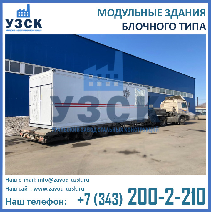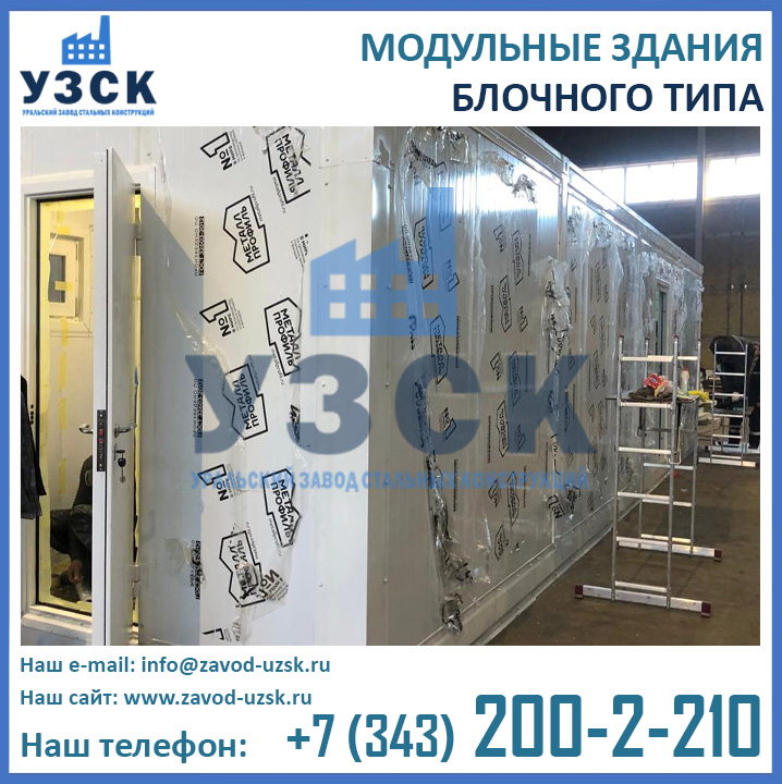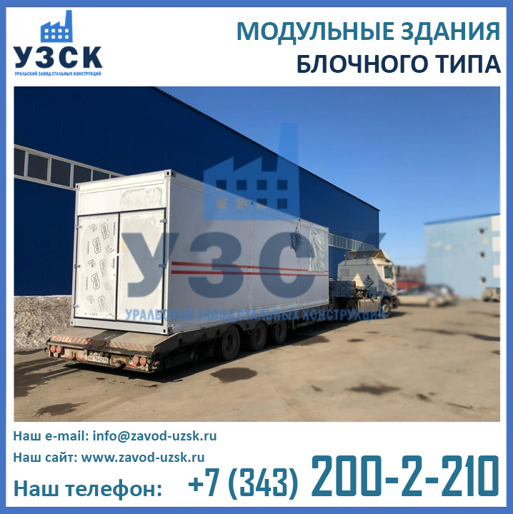 Если Вы планируете купить блок-модульные конструкции (быстровозводимые блок-модули) на выгодных условиях, обратитесь в компанию «УЗСК» в Екатеринбурге. Завод оснащен всем необходимым оборудованием, производственными и складскими помещениями, штата компании укомплектован грамотными и квалифицированными сотрудниками – благодаря этому, обеспечивается выпуск надежной и долговечной продукции со всеми необходимыми гарантиями. Заказать блочно-модульные конструкции можно по телефонам, указанным в разделе «КОНТАКТЫ», или оставив заявку на нашем сайте.