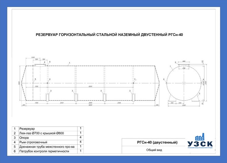 РГСДн-40: горизонтальный резервуар двустенный наземного расположения;