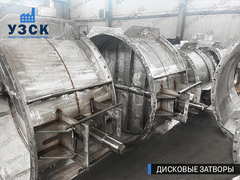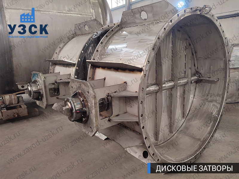 Конструктивно дисковый затвор представляет собой сварной корпус из нержавеющей стали с приваренными с концов фланцами или патрубками под приварку, необходимыми для соединения с трубопроводом и заслонкой в виде диска, осуществляющей закрытие и открытие потока среды.