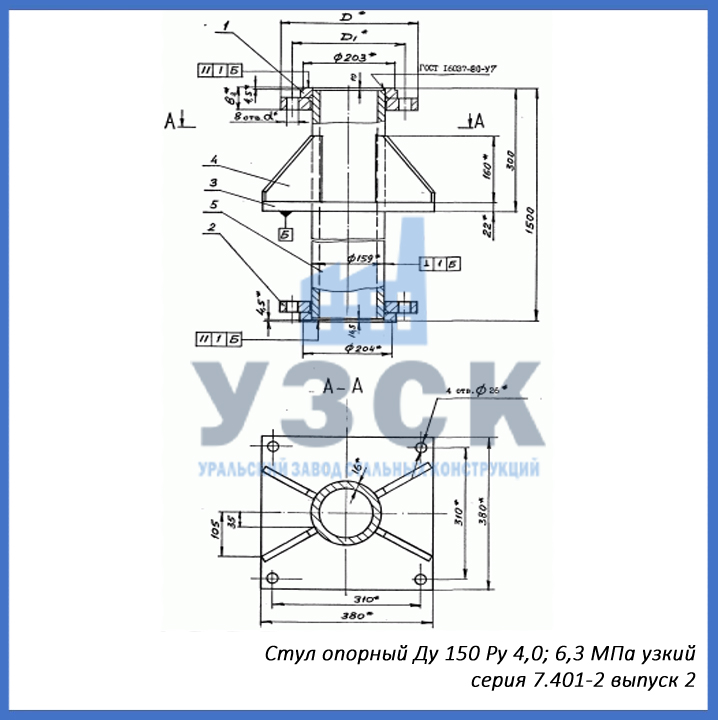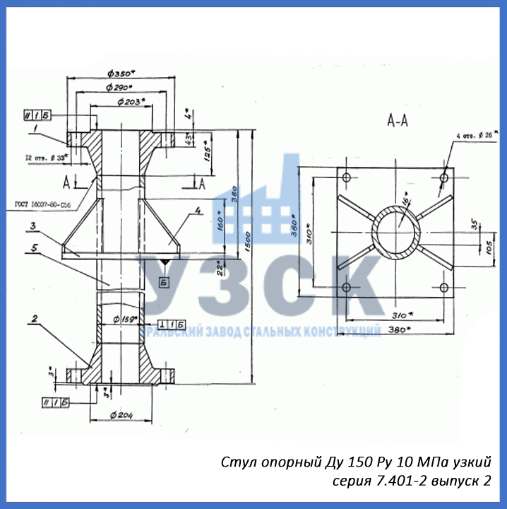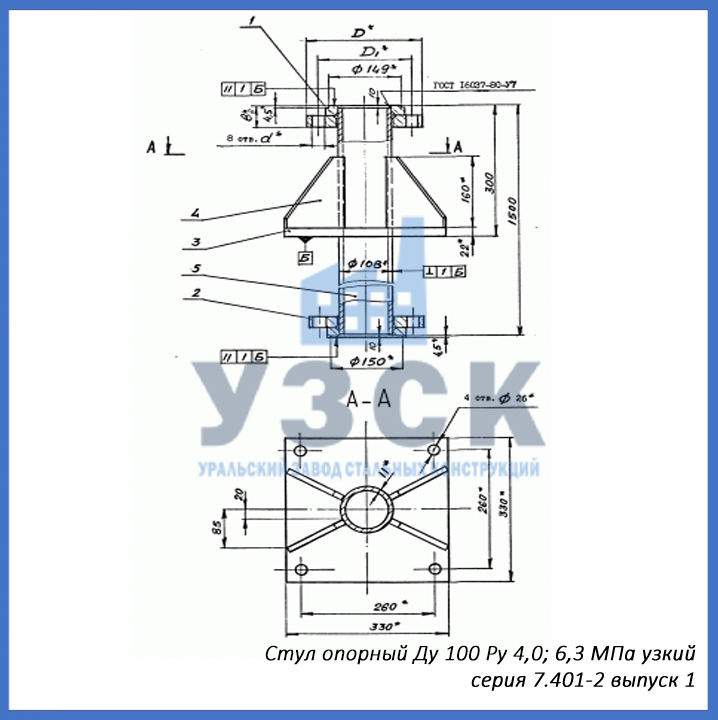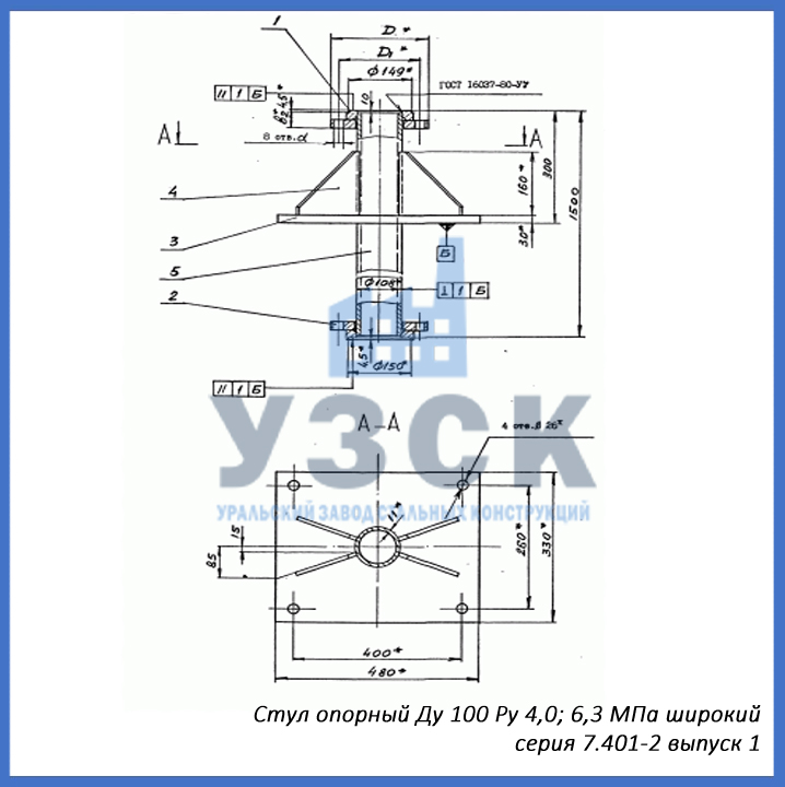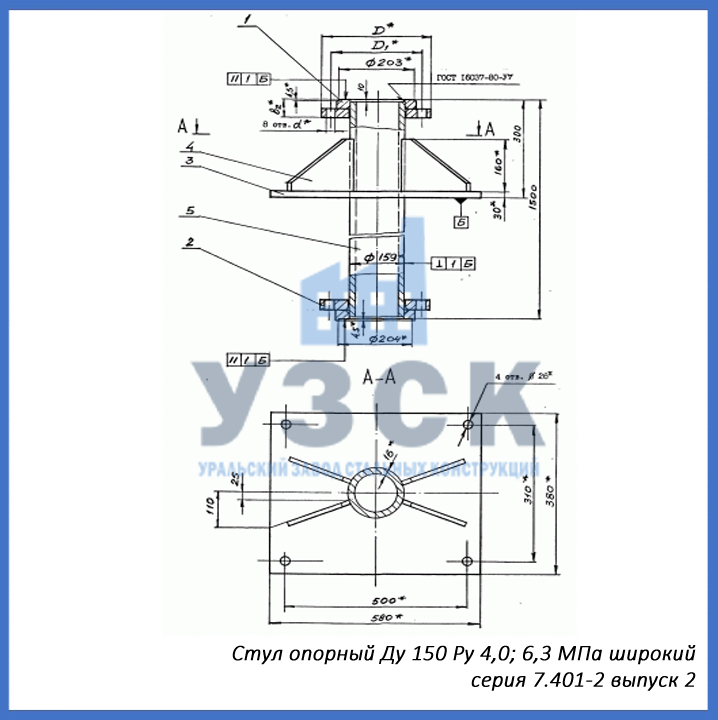 - серия 7.401-2 выпуск 2 – стул опорный узкий Ду 150 мм (СОУ-150), стул опорный широкий Ду 150 (СОШ-150);