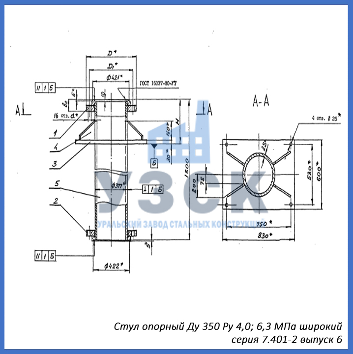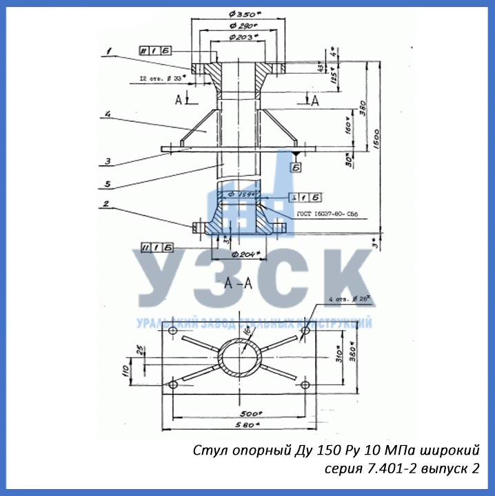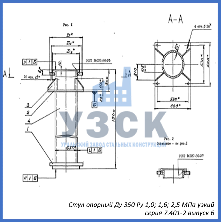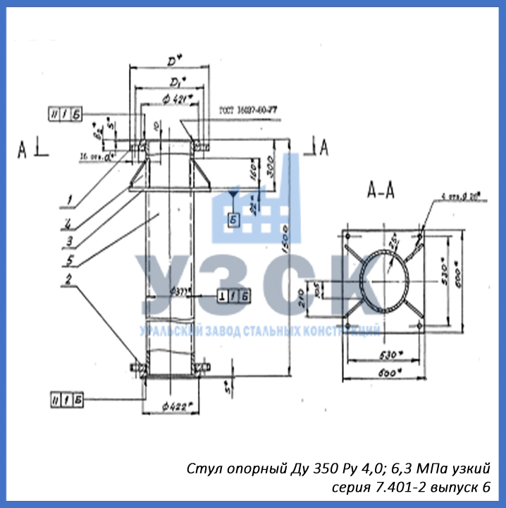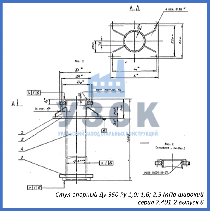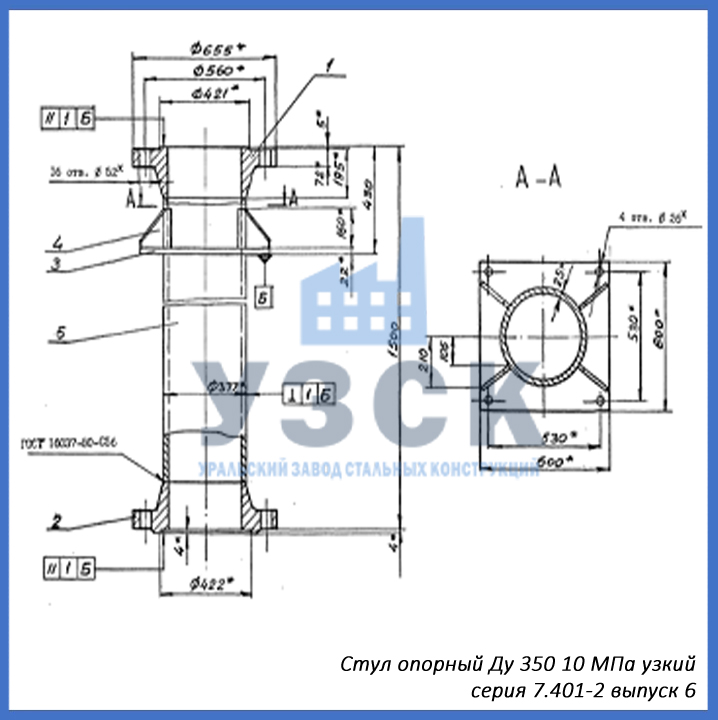 - серия 7.401-2 выпуск 6 – стул опорный узкий Ду 350 мм (СОУ-350), стул опорный широкий Ду 350 (СОШ-350);