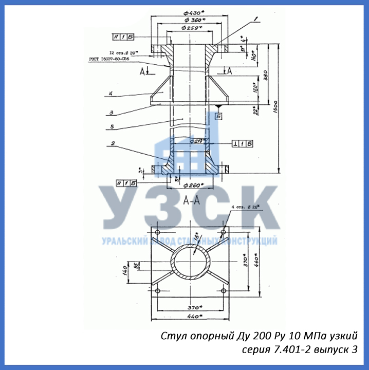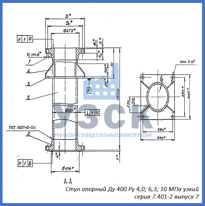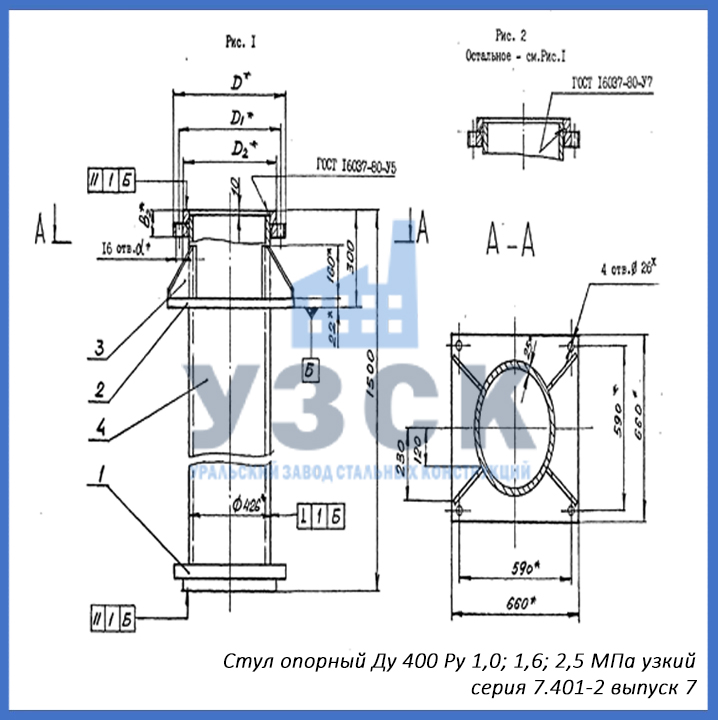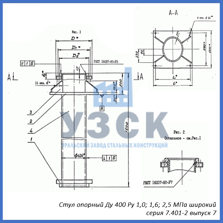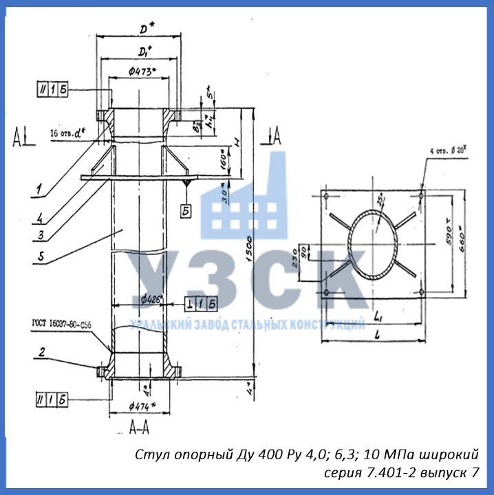 - серия 7.401-2 выпуск 7 – стул опорный узкий Ду 400 мм (СОУ-400), стул опорный широкий Ду 400 (СОШ-400);