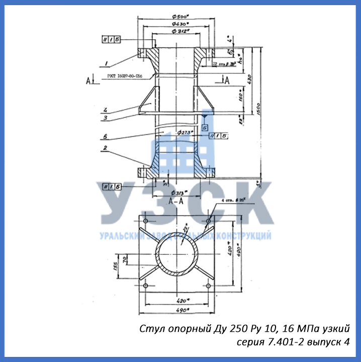Стул опорный широкий Ру 10,0; 16,0 серия 7.401-2 выпуск 5.