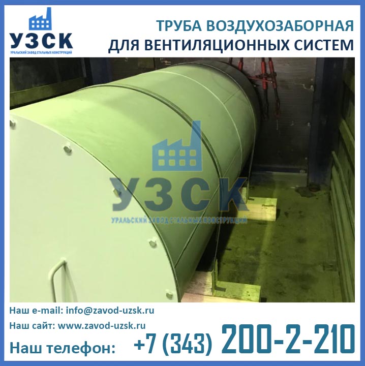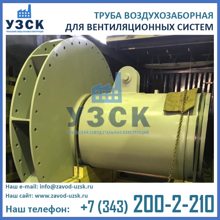 Уральский завод стальных конструкций осуществляет производство воздухозаборных труб для систем приточной вентиляции по альбомам Т-ОВ-03-01 и Т-ОВ-03-08. Вохможно изготовление труб воздухозаборных по чертежу заказчика.